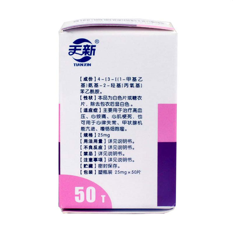 【功能主治/適應癥】主要用于治療高血壓、心絞痛、心肌梗死,也可用于心律失常、甲狀腺機能亢進、嗜鉻細胞瘤。