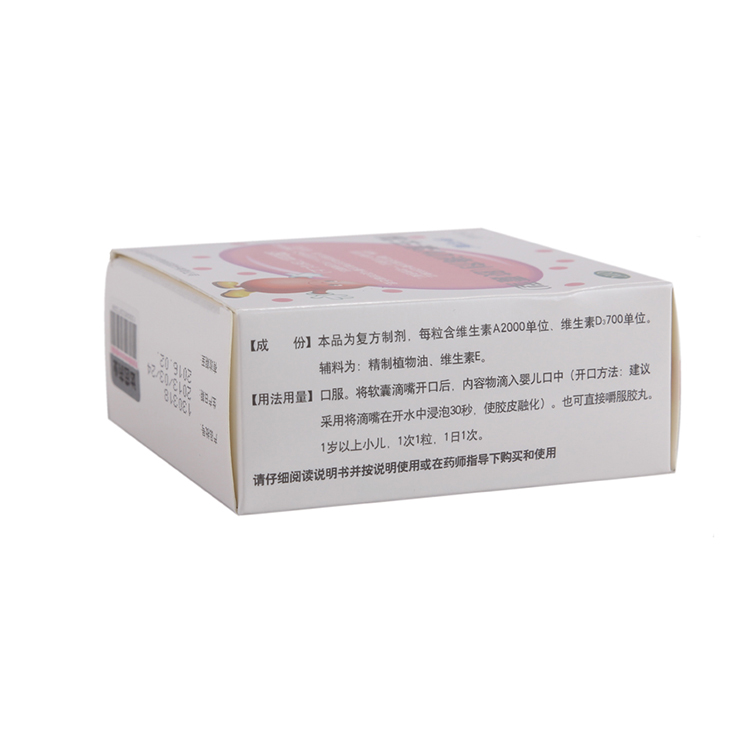 【主要成份】本品為復方制劑,每粒含維生素A2000單位、維生素D700單位。輔料為:精制植物油、維生素E。