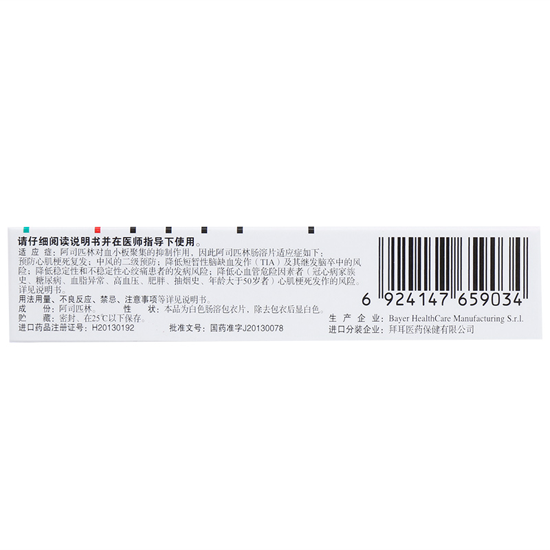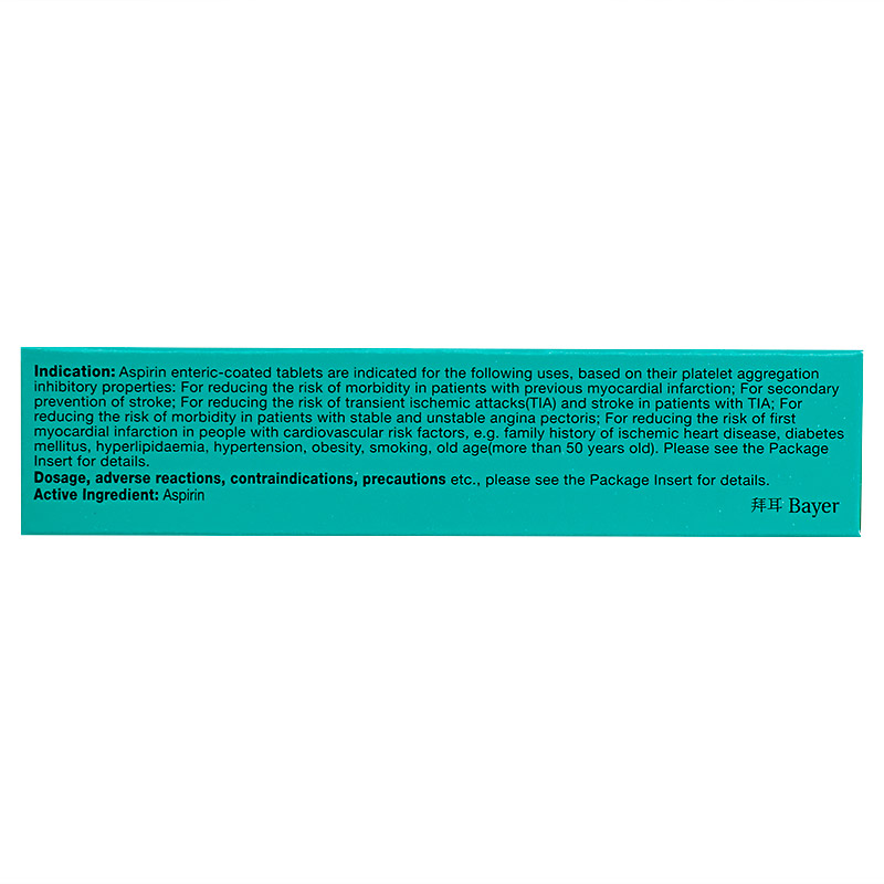 降低急性心肌梗死疑似患者的發(fā)病風(fēng)險:建議首次劑量300mg,嚼碎后服用以快速吸收。以后每天100-200mg。