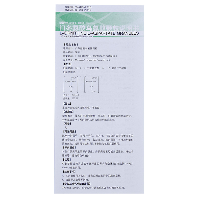 英文名稱:L-ORNITHINE L-ASPARTATE GRANULES