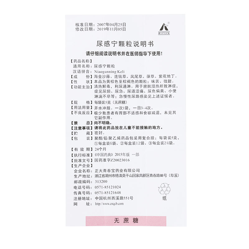 【功能主治】清熱解毒,利尿通淋。用于膀胱濕熱所致淋證,癥見尿頻、尿急、尿道澀痛、尿色發(fā)黃、小便淋漓不盡等:急慢性尿路感染見上述證候者。