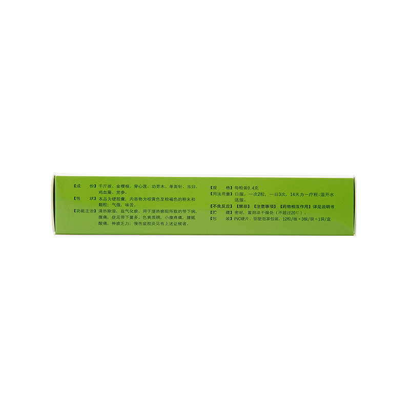 【功能主治/適應癥】清熱除濕,益氣化瘀。用于濕熱瘀阻所致的帶下病,腹痛,癥見帶下量多、色黃質稠,小腹疼痛 ,腰骶酸痛,神疲乏力;慢性盆腔炎見有上述證候者。
