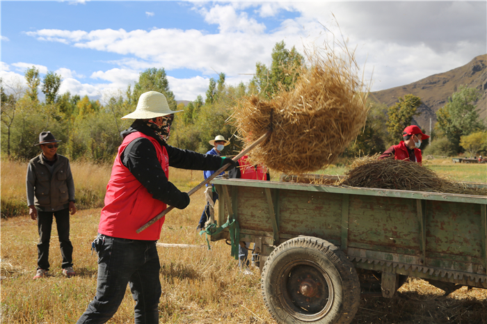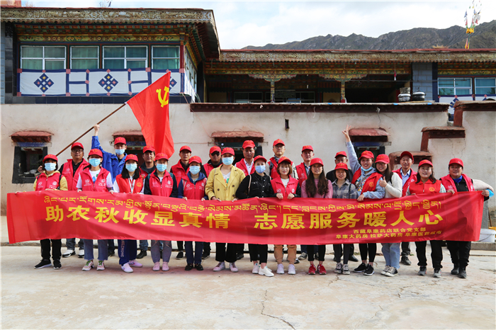 10月3日,西藏阜康藥店聯合黨支部前往林周縣邊交林鄉卡優村開展“助農收割,慰問困難群眾”志愿者獻愛心公益活動。